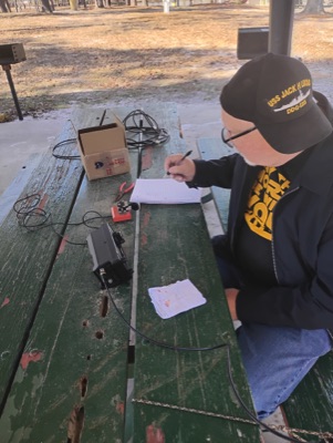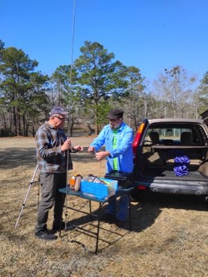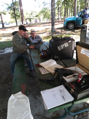 KQ4AMK, N7GZT,W4FSV,and WF7F enjoy a morning of QRP operating and fellowship at Heyward park in Calhoun County.